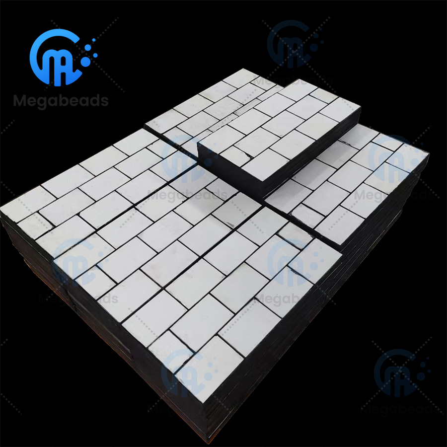 ZTA composite liner is also called ZTA ceramic rubber composite liner. It is a composite material that combines ceramic liner and rubber plate. ZTA is also called alumina-zirconia composite ceramic, which is a composite material composed of two ceramic phases, alumina and zirconia. It uses advanced hot pressing technology to closely combine high-hardness ceramics with high-elasticity rubber, effectively improving the overall wear resistance, impact resistance, anti-slip, waterproof and other properties of the plate.There is good adhesion between ceramics and rubber, so that ceramics and rubber can bear loads together, thereby improving the load-bearing capacity of the entire composite plate.This makes the product widely used in vibration equipment, conveying systems, mining equipment and other fields.